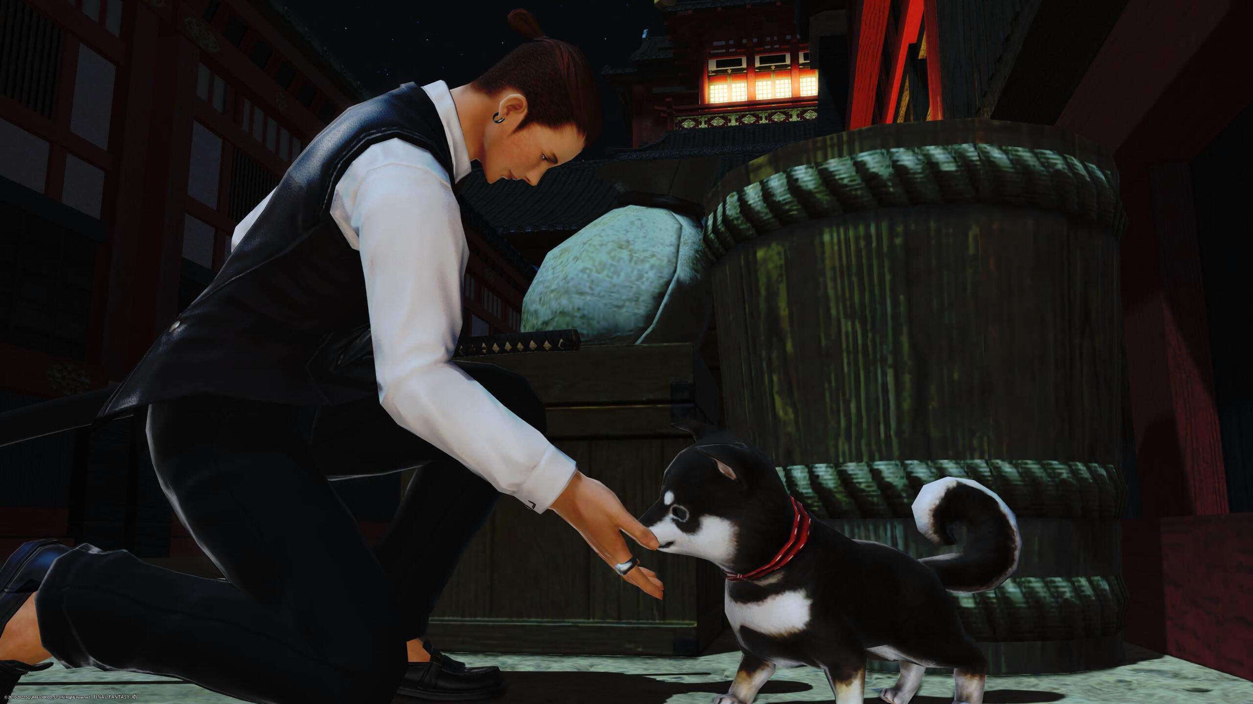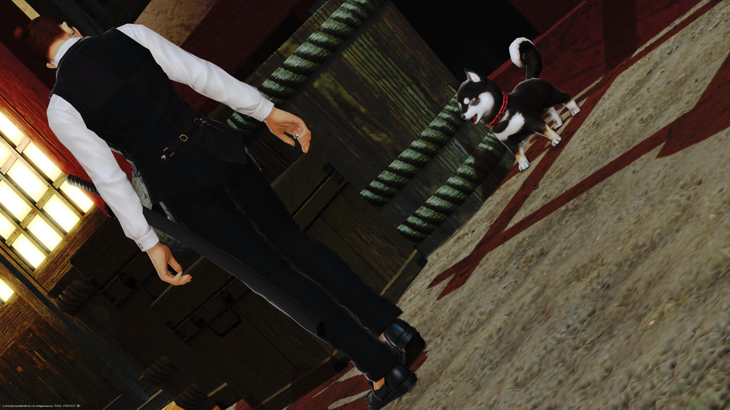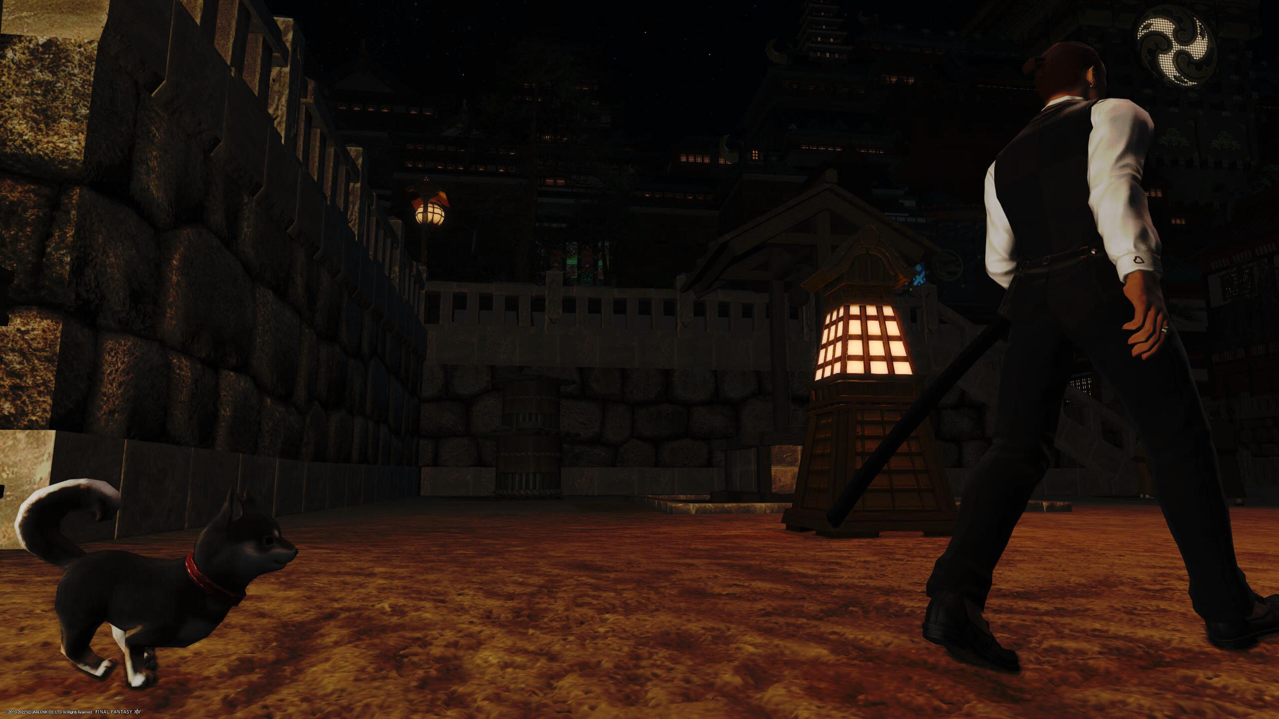 [Hito]: ”Well, let’s go.”The two took off into Kugane, with the pup becoming quickly attached to Hito.